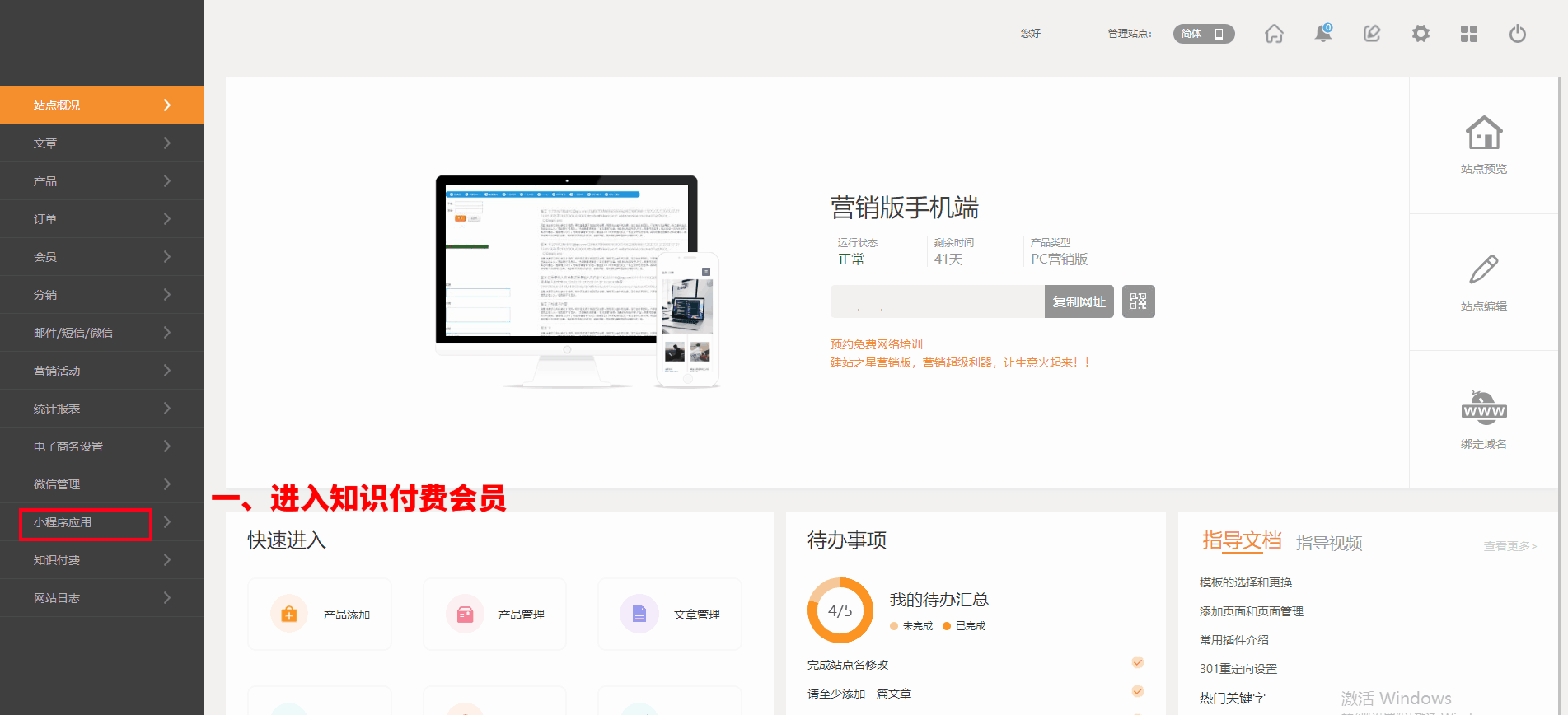 建站后台:“知识付费” — “营销活动”— “会员管理”— “付费会员”— “会员赠送”,如下图所示: