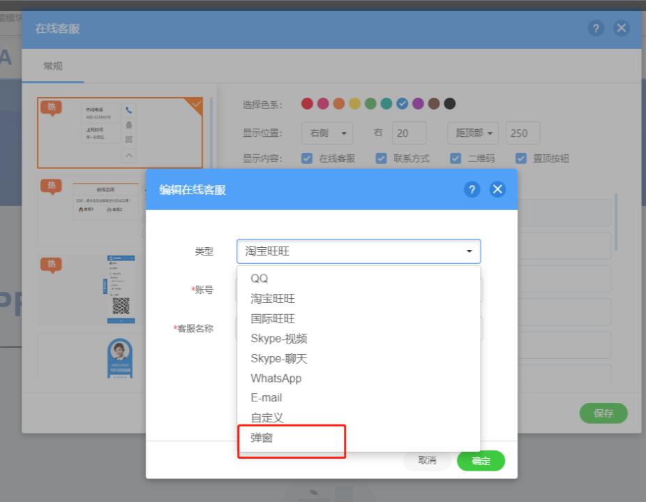 二、在线客服增加选择弹窗类型-可弹出二维码