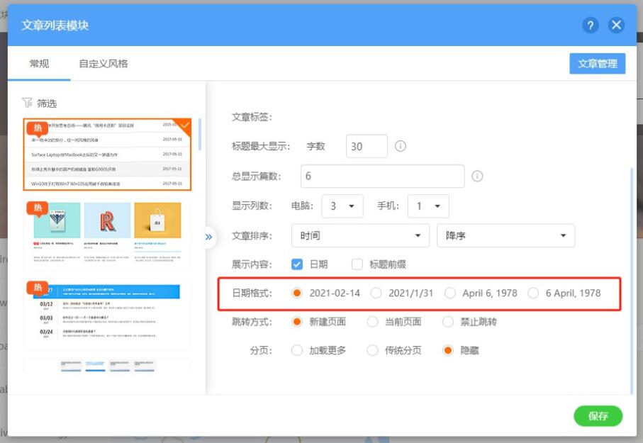 四、文章列表新增日期显示格式选择